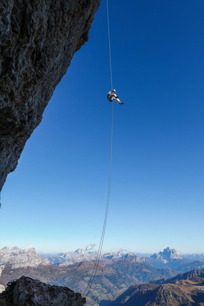 - Hat deutlich Potential für Verhauer, gerade im oberen Teil. Viel loser Schotter auf den Bändern, oft muss man dazu noch schief/ums Eck abseilen. Bei uns ging dann alles gut, aber wer von ganz oben abseilt, sollte entsprechende Erfahrung mitbringen, sonst kann hier definitiv auch was schiefgehen. Evtl besser über den Klettersteig wieder absteigen.