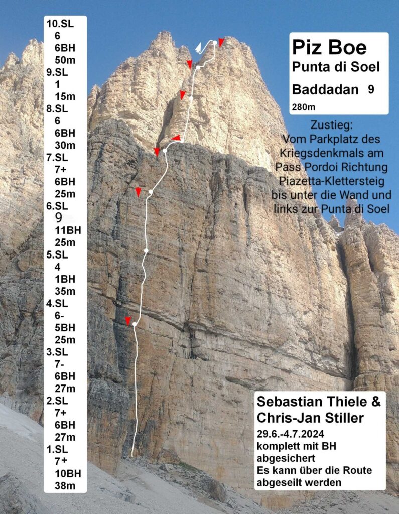 Dolomiten: „Baddadan“ (7c), Punta di Soel, Piz Boe