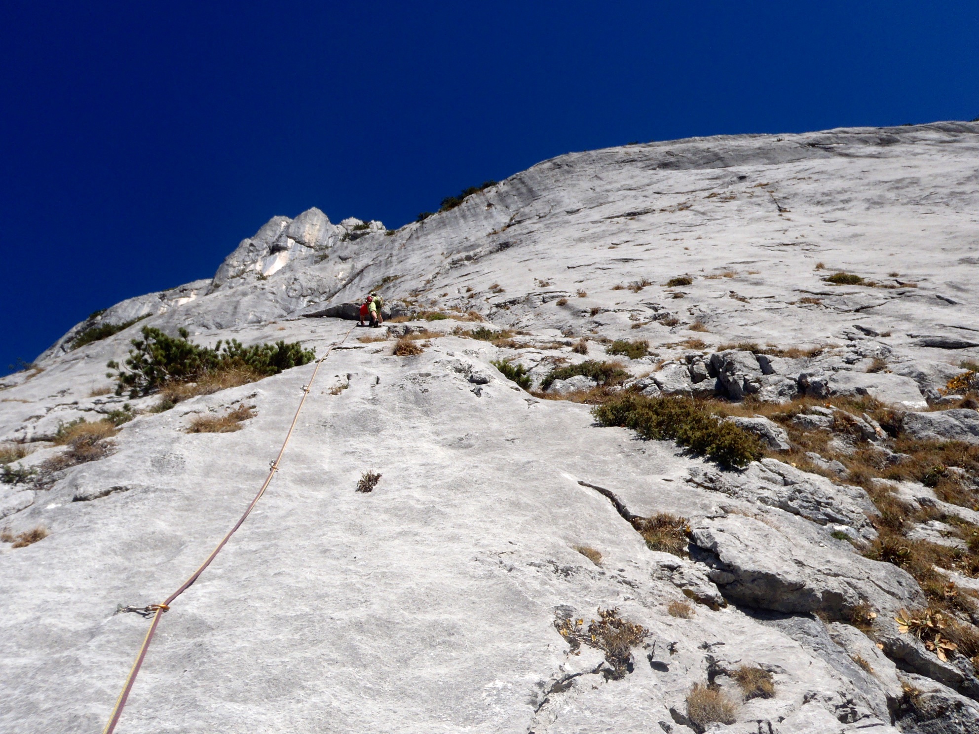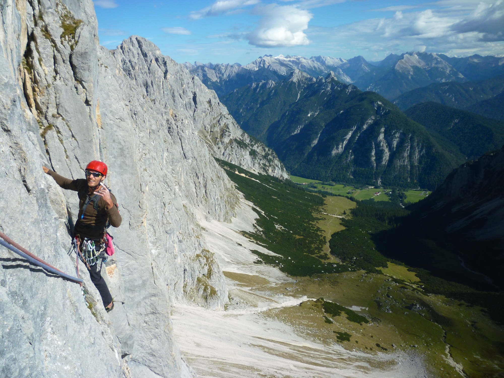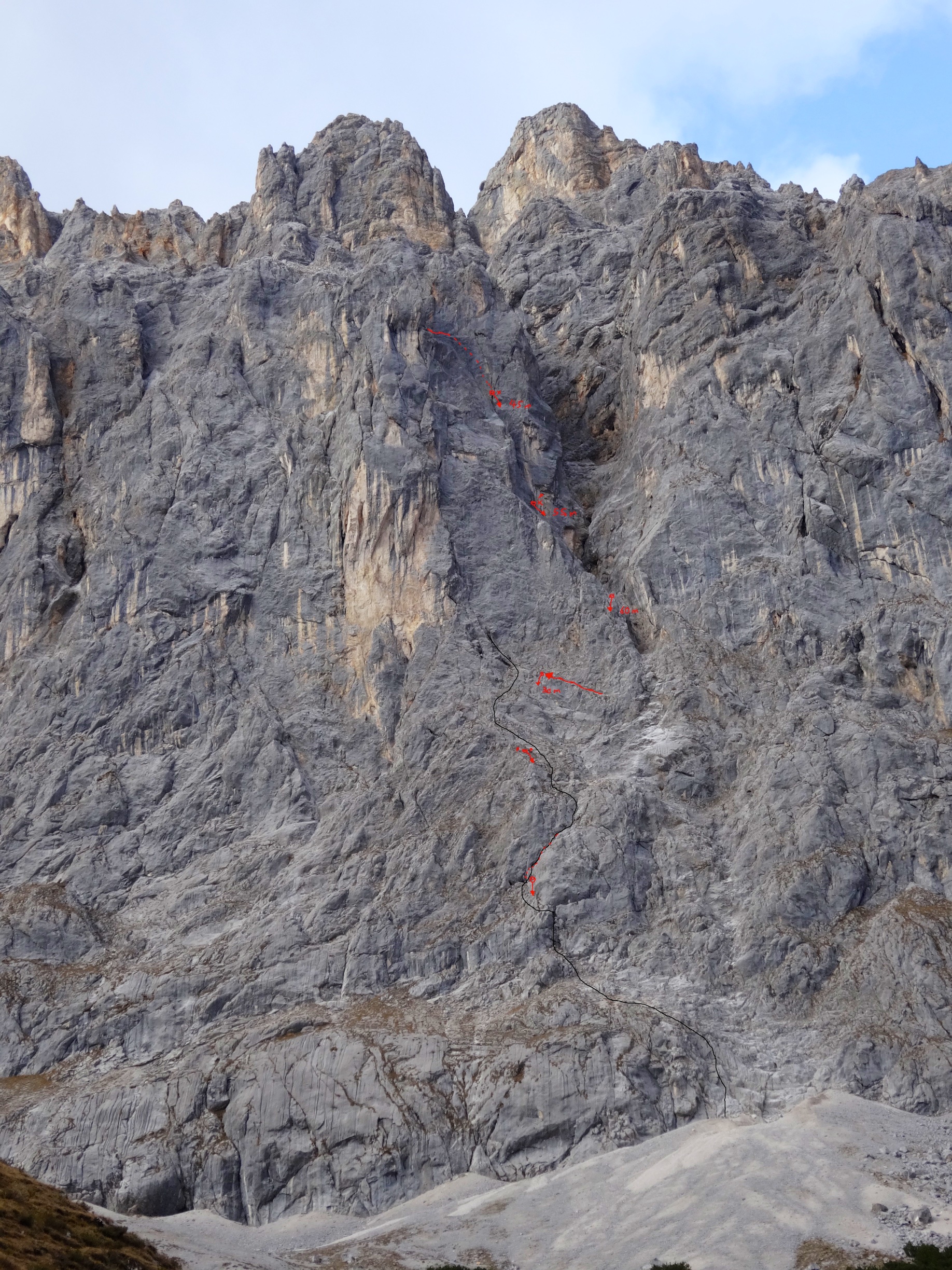 One more on the list. It is always special to climb a route set up by your dad and dedicated to you mum, there are not too many of those routes around. 1991 that was, Schöpf/Knabl. Back in the day, Mon Cheri was among the first fully bolted routes in this area, quite a thing. 15 years later, we take this perfect October day to repeat it in style, what a climb! 7 pitches of continuous tricky climbing, starting off with the crux pitch testing all your on-sighting skills. Finally done!