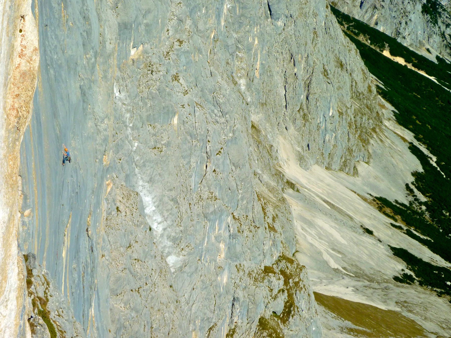 Situated at the far right end in this endless sea of rock, Da Capo takes a beautiful line in 7 pitches, starting off with an almost impossible slab start (6+?!). Best of all weather, best of all rock, what a place! The climbs around Wermeteigen Alm are more than just idyllic, they are ridiculously idyllic. This was on the last day of October, and doing an out-of-this-world pumpy 40m 7a baseclimb at the seemingly forgotten crag in the last of this days sun rays and almost collapsing from overheating, well, this was a clear sign that there might be something slightly “wrong” with the weather this season.