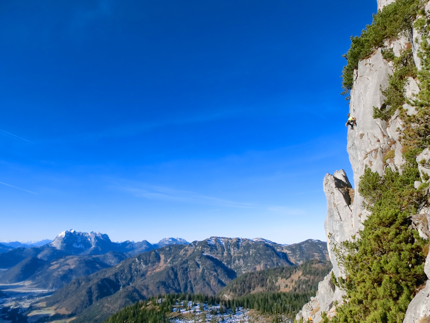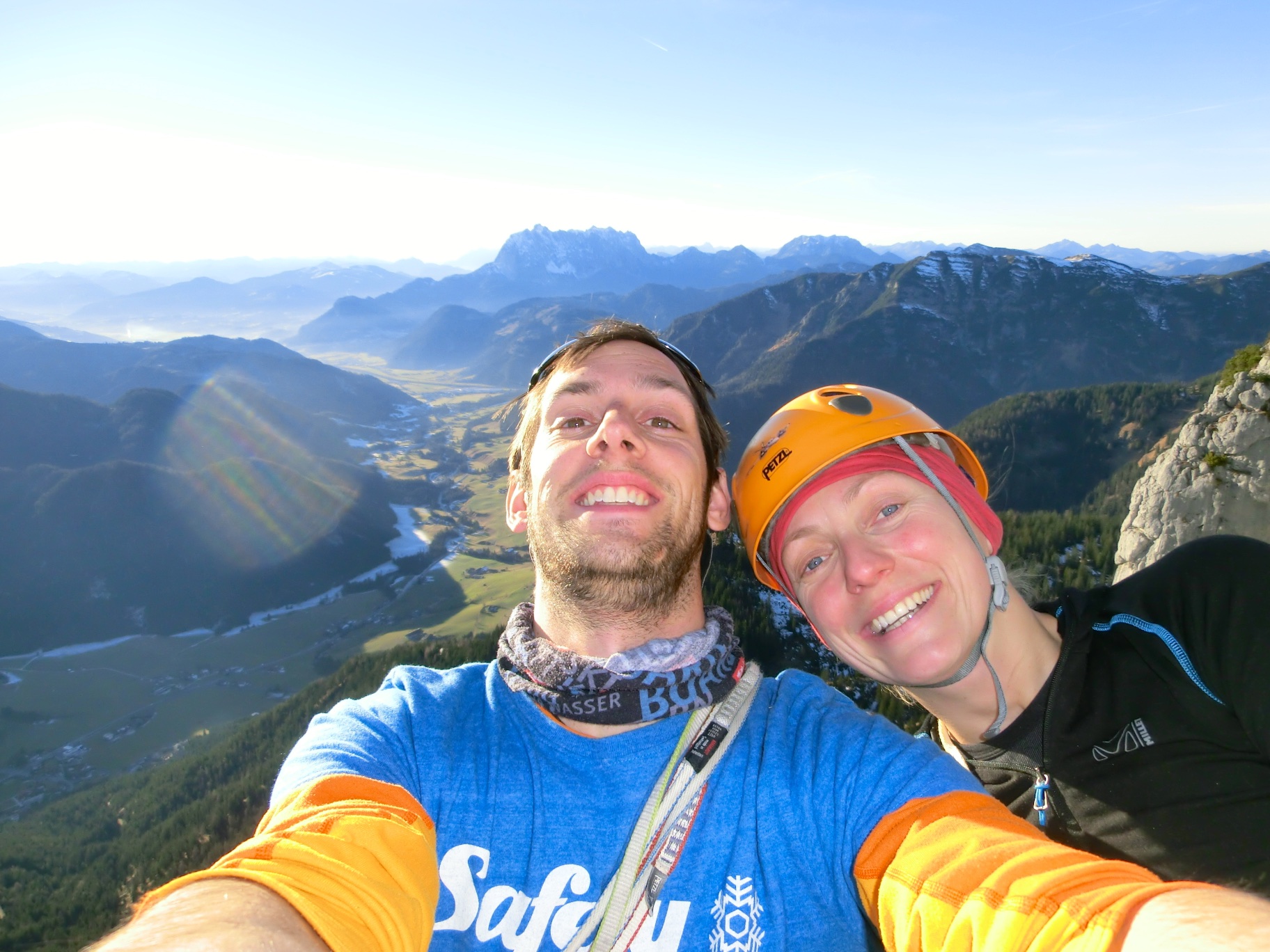 One last alpine climb end of December, still in t-shirt, still at 1.500 m. Back to the good old Steinplatte, the conditions are incredible, and we choose to go for a mix of few tours on the Akkupfeiler. Beautiful rock as always, beautiful day as so often. Good times out! Topping out into a skiing area where people are actually skiing is something quite surreal, but well, everyone follows his or her passions. We chose rock!