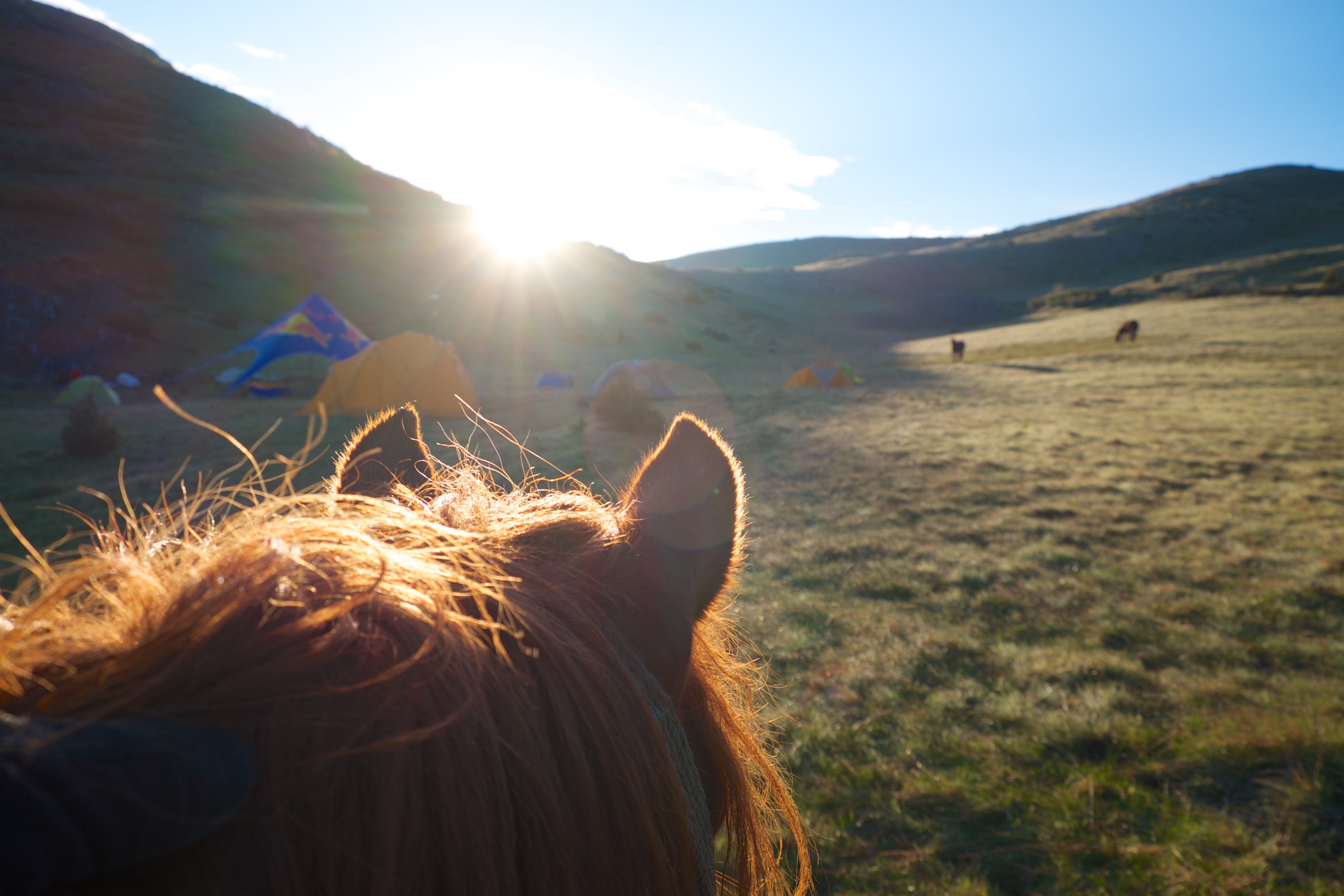 Im Hintergrund hundert Gipfel, sechs Pferde und ein surrealer Sonnenuntergang. Momente wie diese sind dann nur mehr sehr schwer zu toppen im Leben.