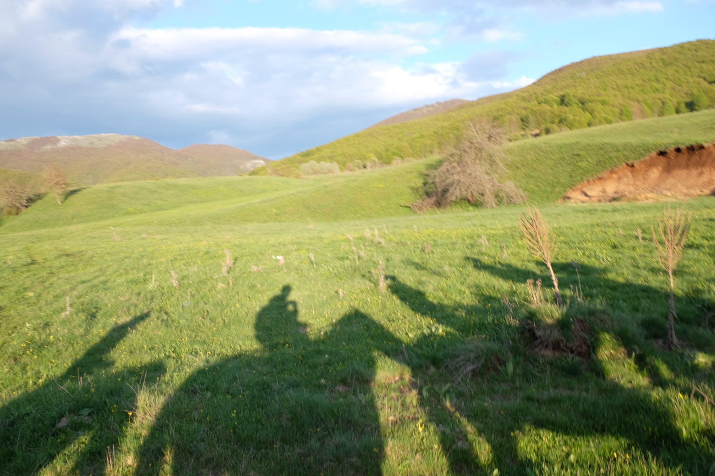 Durch Mazedonien reiten, ja das macht glücklich, und das fühlt sich auch irgendwie an wie eine Zeitreise. Ungefähr so muss es in den Alpen vor 100 Jahren gewesen sein. Natürlich, die Hütten-Infrastruktur, die Lifte, die Forstwege, das fehlt dann halt auch, aber dafür sind wir nicht hier. Hier ist die Entdeckung der Einsamkeit angesagt, away from it all. Und diese Landschaft, durch die wir reiten, die eignet sich ganz wunderbar dafür: Die Berge sind hoch, aber nicht so hoch, dass sie einem den Blick versperren würden: Einmal oben auf den gemächlichen Grasrücken hat man eine Rundumsicht, die man so bei uns nur auf über 3.000 Metern hat; hunderte Kilometer können die Augen ungebremst in jede Richtung schweifen!