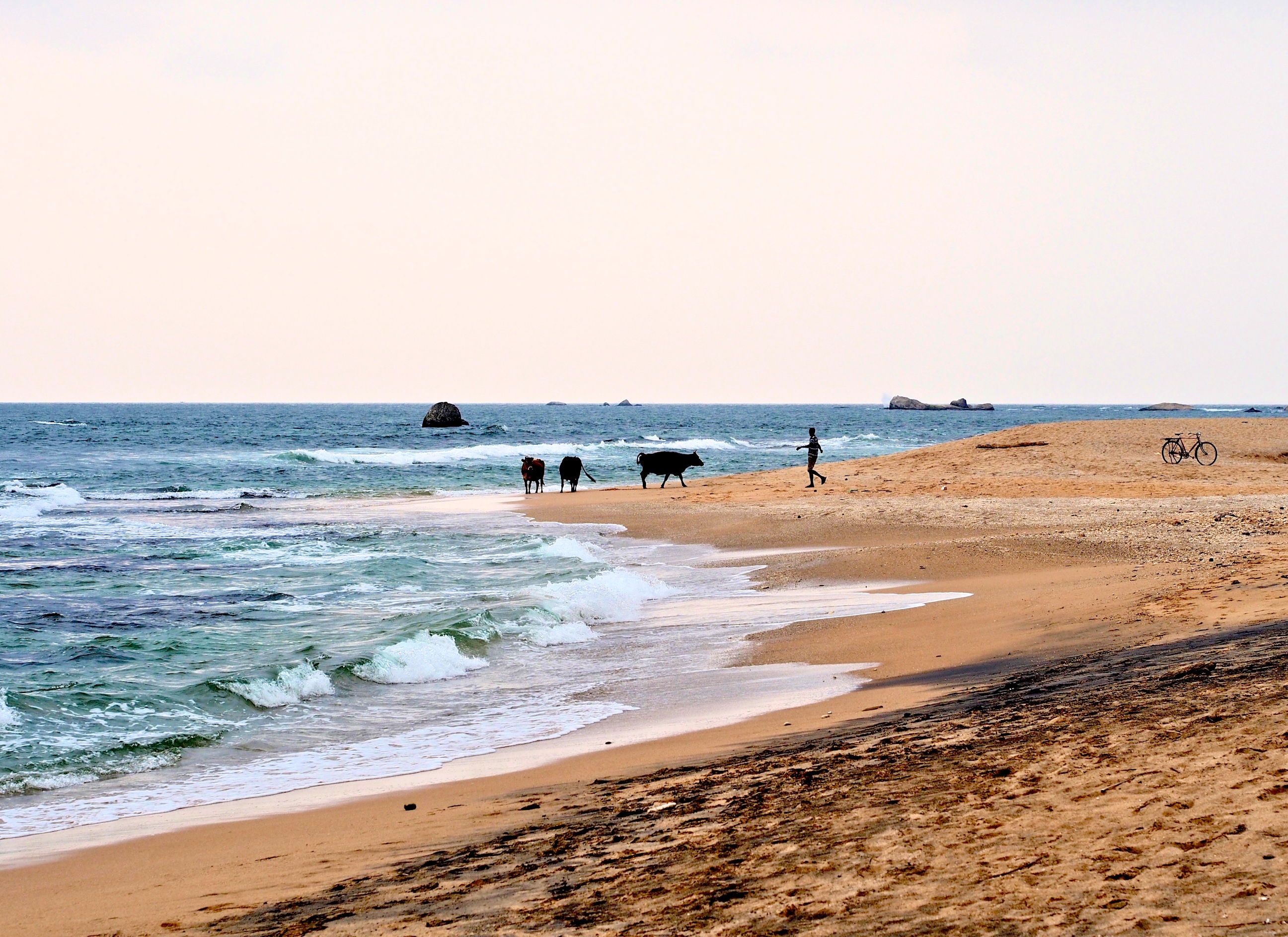 Sri Lanka: Männer in kunterbunten Röcken, Tuk-Tuk hup hup, Plasik-Buddhas, original verpackt, spuckende Frauen, rote Zähne, Elefantifantis, die Straße an Sich, Kühe, heilige Kühe, Tropenfrüchte lecker lecker, Bananen, sowie überall, Mode, die noch Stil hat, mit Hemd natürlich, dir winkende Kinder, groß und klein, Müllhalde überall, “Hello Sir, want Tuk-Tuk?“, tausend Mal, Palmen, Hunde, Palmen, Hunde, Palmen, Hunde, die nie war tun, Kinder, die nicht schreien, aber winken, Menschen, die immer irgendwo auf irgendwas warten, sich aber nie darüber aufregen, geshakte Säfte, der Taco, auf den du deine Stunde wartest, dafür bio, Babyelefanties, Buddha-Tempel meets Hindu-Tempel meets Kirche meets Bodhi-Tree, Kokosnüsse, leckerli, 250 Rupees.