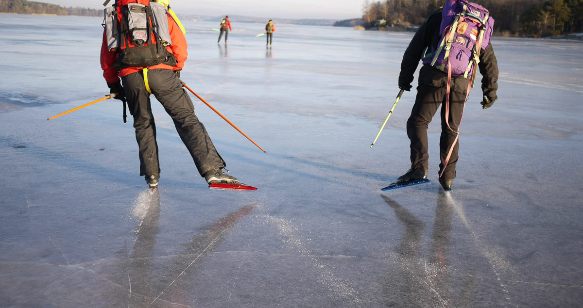 Starting from Hässelby in Stockholm, we found once again perfect ice and this time, even coupled up with perfect wether; A what I found very rare combination indeed. All the better to use this perfect day for the adventure, we could skate almost all the way, except to small passages that have to be walked because of floating water (not good for ice building). The 62km distance were covered in 5h and 1min; Of course, missing the 5h mark so closely can only mean that I will have to do it ALL again. Too bad.